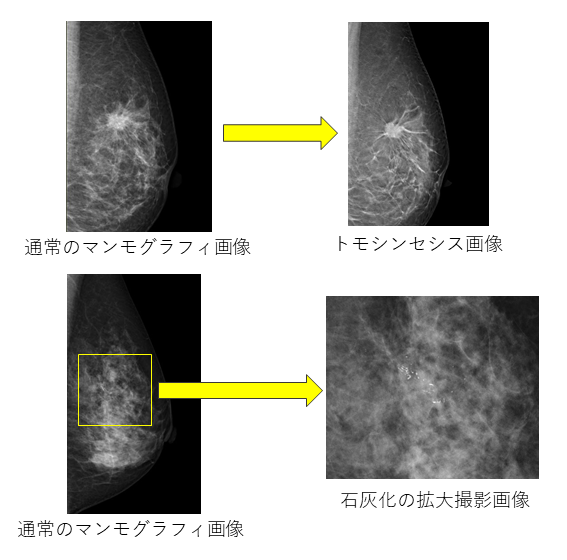 拡大撮影は、乳房の特定の部分を拡大して詳細に観察するための撮影方法です。通常の撮影よりも小さな範囲を拡大して写すことで、微細な石灰化や小さな病変をより詳しく評価できます。