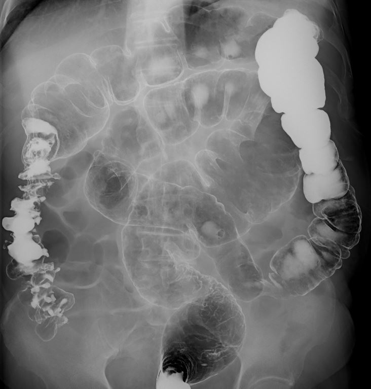 大腸造影検査は、造影剤を使って大腸の内部をX線で映し出し、ポリープや腫瘍、炎症などの異常を調べることができます。腸が重なり病変がわかりにくい場合は複数の角度からX線撮影し、それらの画像をコンピューターで立体的に再構成する断層撮影を行います。これにより、通常の撮影では見えにくい腸の重なりを分離して、より詳細で正確な画像が得られます。