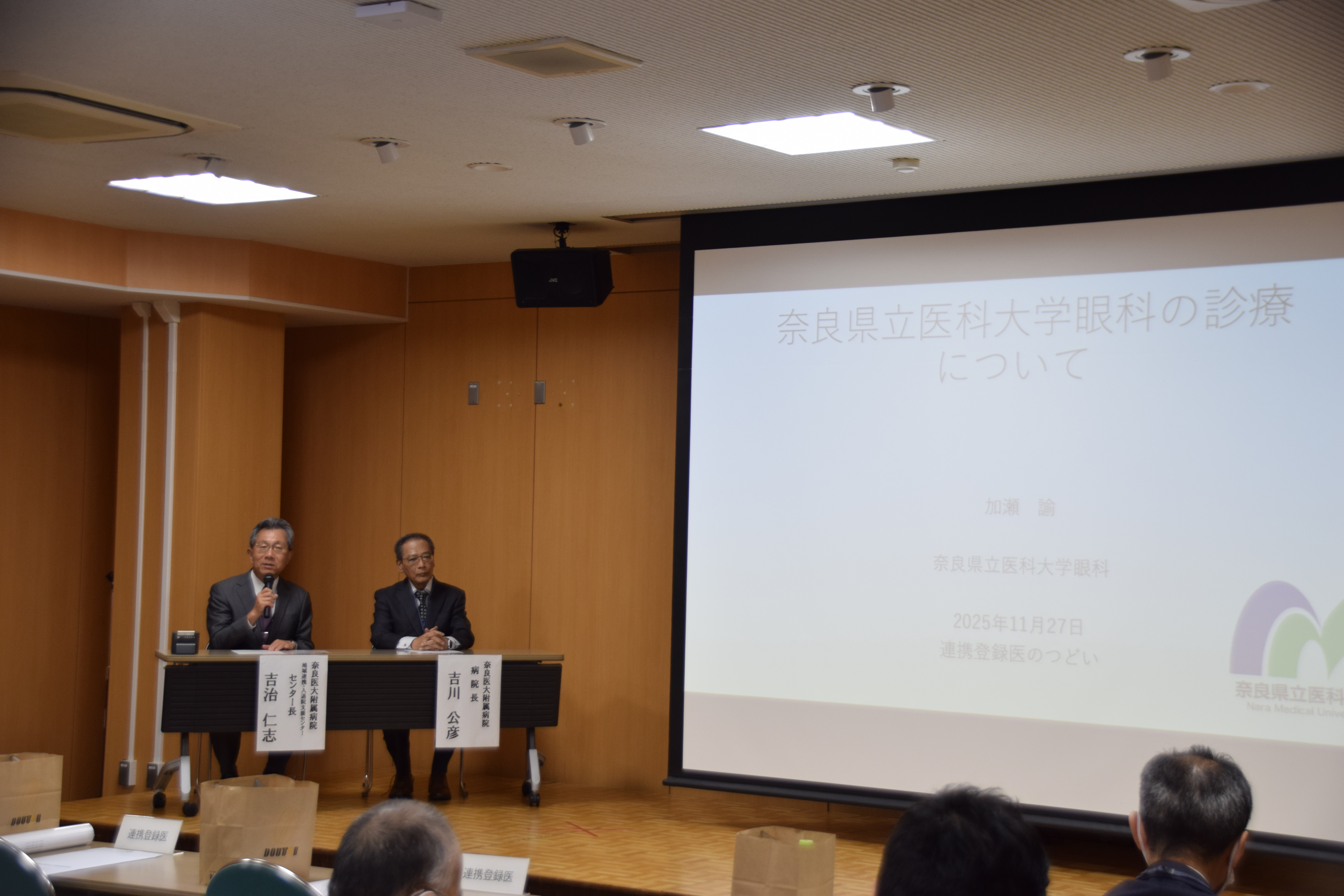 【第1部】講演会座長 奈良医大附属病院 地域医療連携室 室長 消化器・代謝内科 教授 吉治 仁志講演Ⅰ『奈良医大における眼科診療について』 奈良県立医科大学附属病院 眼科 教授 加瀬 諭講演Ⅱ『呼吸器疾患における奈良医大の役割 ~地域連携で患者さんの“息”を守る~』 奈良県立医科大学附属病院 呼吸器・アレルギー内科 教授 室 繁郎